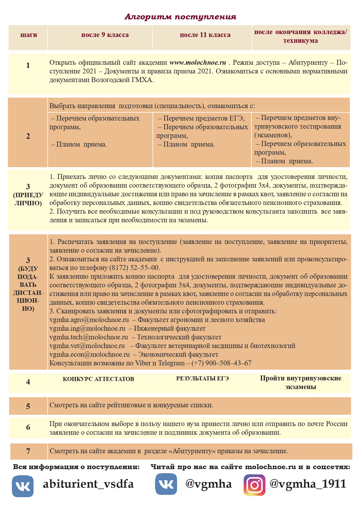 Ответственный секретарь приемной комиссии Вологодской ГМХА Киселева Татьяна Васильевна. Тел.: (817-2) 52-55-00; 8-900-530-02-14